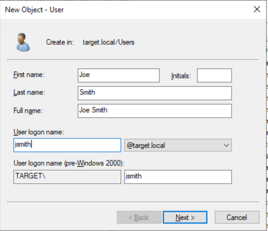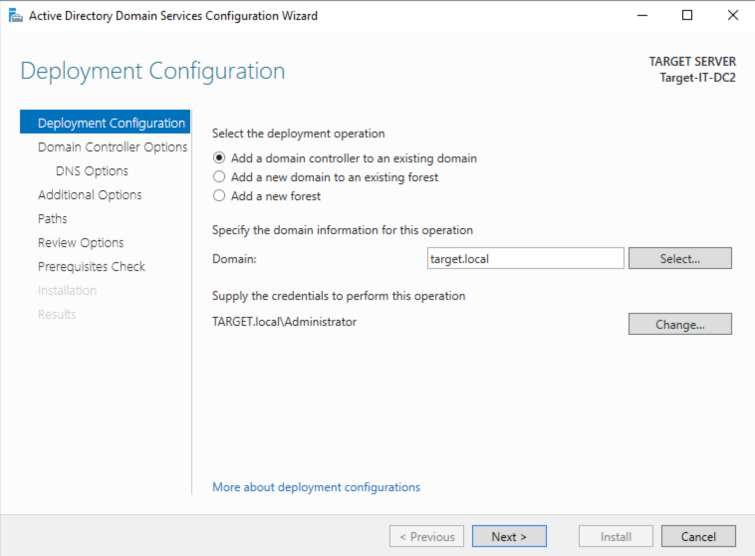 Add a domain controller to an existing domainand make sure it uses the Administrator user specified inTARGET.local\not the local one: