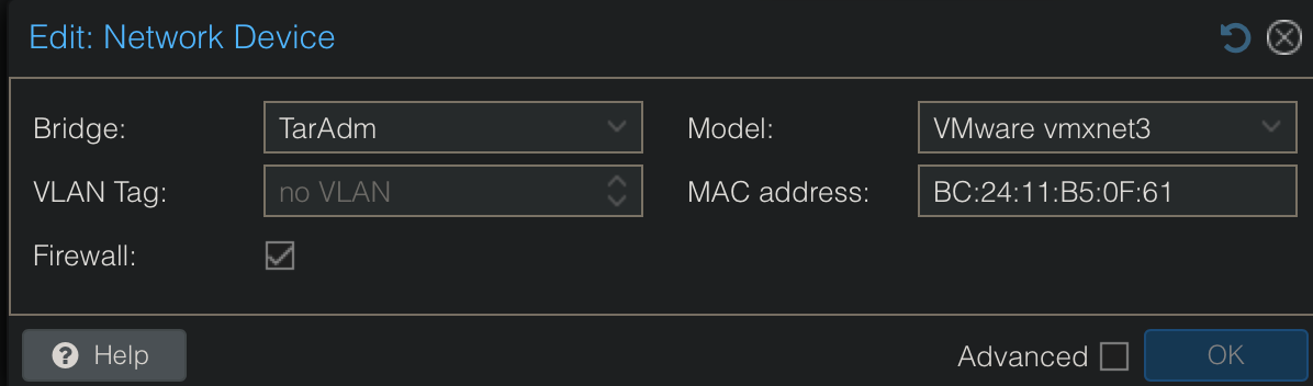 For some reason the default VirtIOnetwork model wasn’t recognized by Windows, so I switched it toVMware vmxnet3: