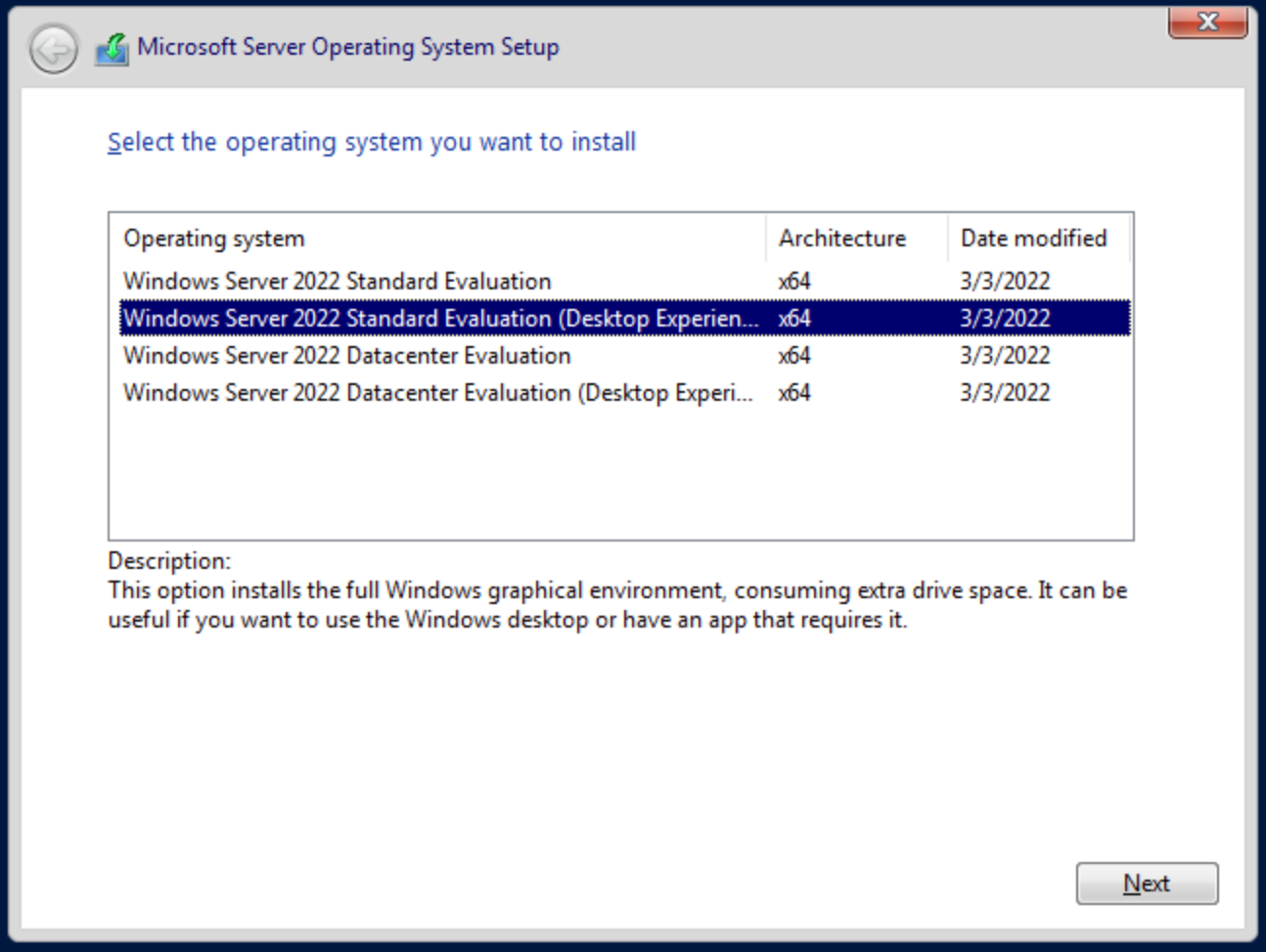 Windows Server 2022 Standard Evaluation (Desktop Experience)