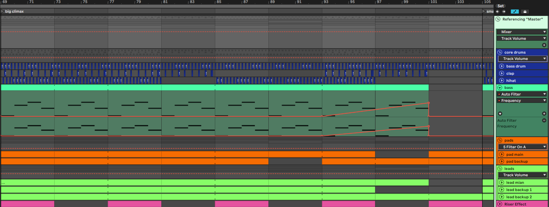 - Filling up the mid frequencies before a climax, so you can take it away afterwards and start “clear” again