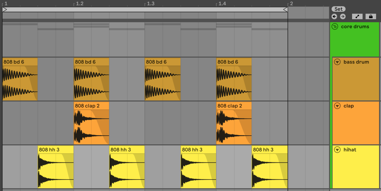 - Midrange (usually a Snare, Clap, or Rip Shot)