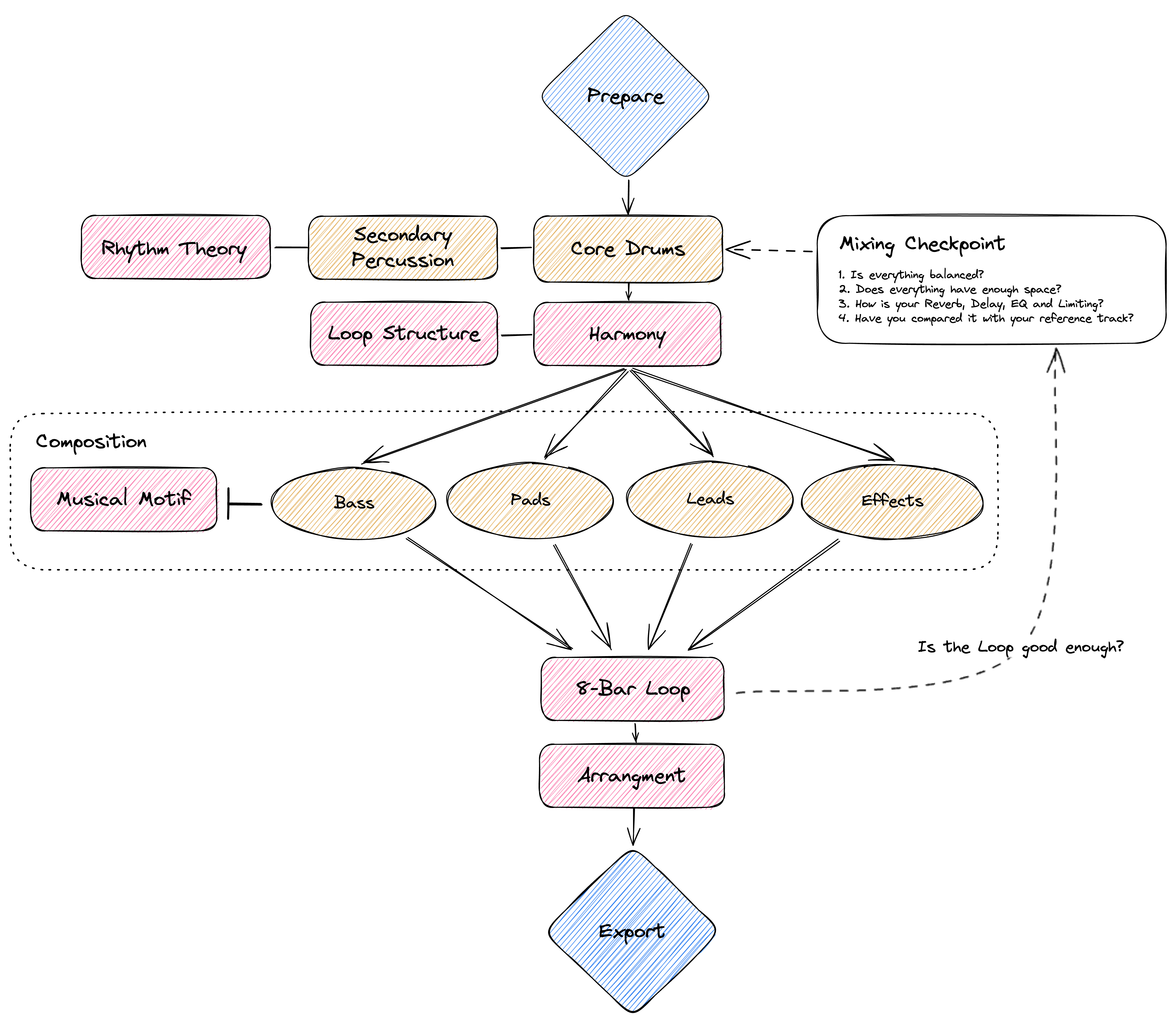 The above-mentioned workflow is just one of many. It’s a pretty “safe” workflow, safe in the sense that it reliably generates pretty good results, but you can for example also fully indulge yourself in sound design through Resampling and create your own sample libraries to use later on.