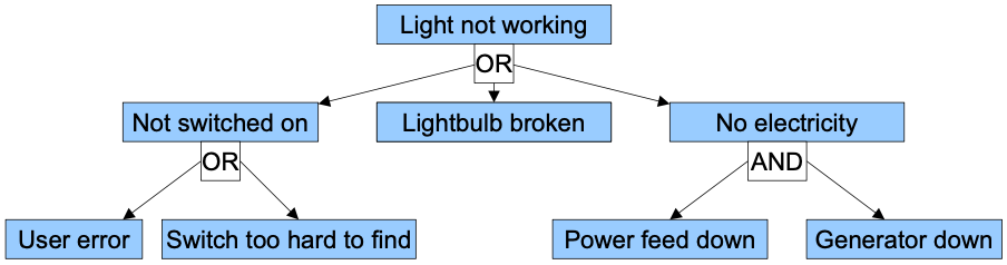 Fault Tree Analysis Fault Tree Analysis is a structured approach to find fault causalities and root-causes 1 Relevant Note(s): Footnotes https://en.wikipedia.org/wiki/Fault_tree_analysis ↩