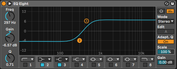 Tilting the sounds, by using low shelves and high shelves to darken or brighten a sound.