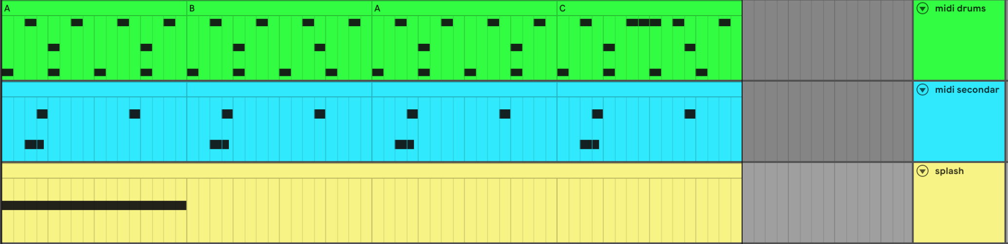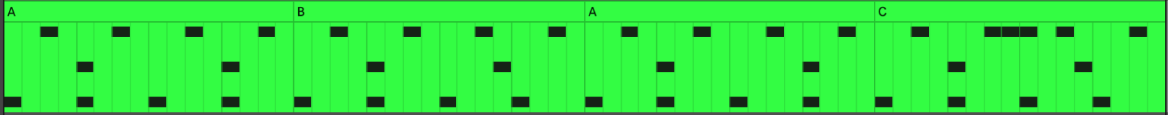 Similar to the Turnaround, you’re also trying to reward the listener for listening to your rather repetitive sequence by changing things up a bit. But this Time not only at the end of a 4 bar loop, but at the end of two 2 bar loops in an AB AC form: