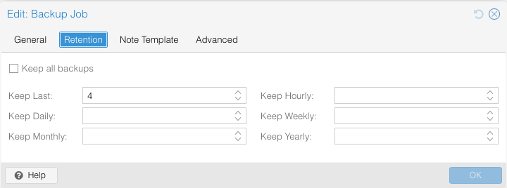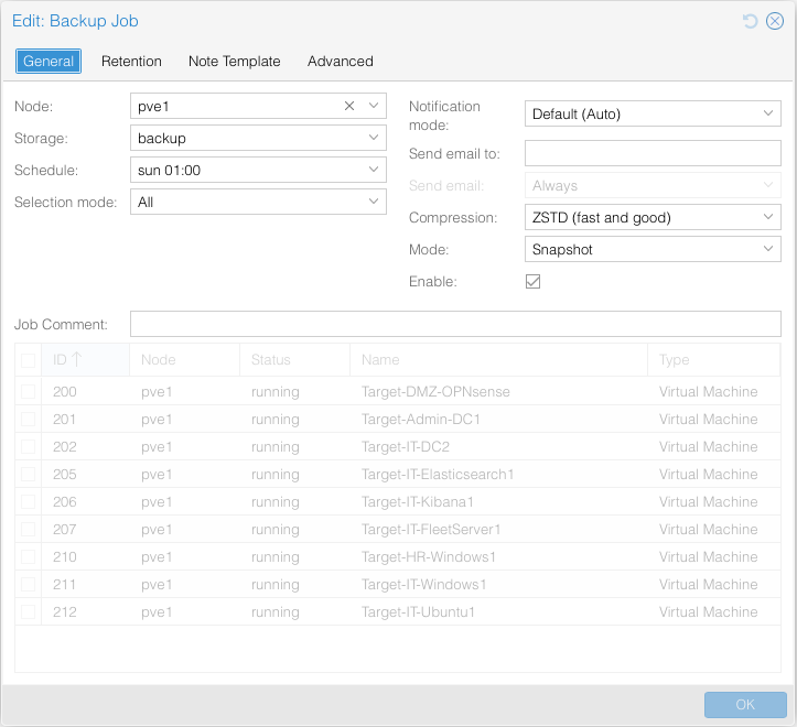 Under Datacenter -> Backup -> Add create a new backup job to your liking, I’ve created to following: