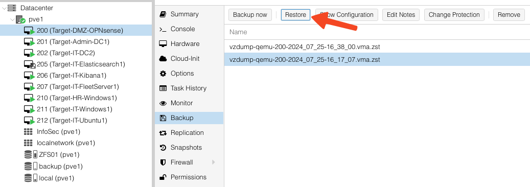 Backupsection of a VM you want to test - Shut it down