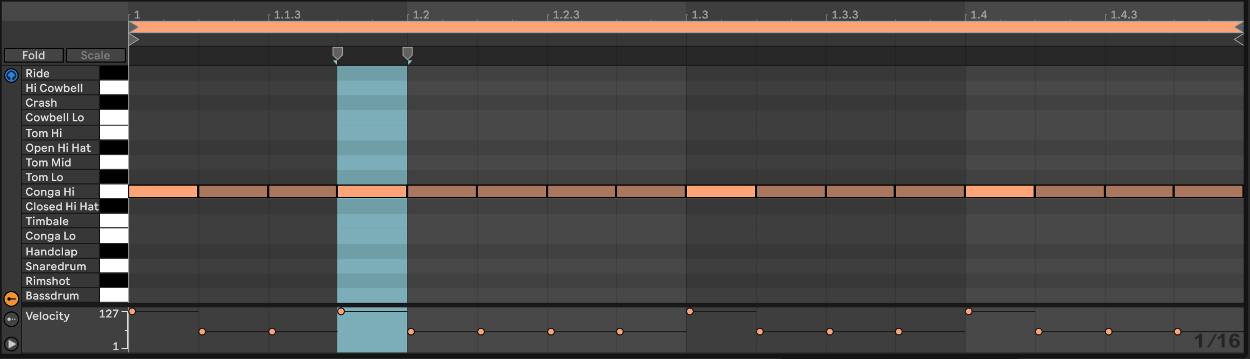 Now that we know who to apply emphasis, we need to know who to use it. This is where Syncopation comes into play. We want to add slight variation to otherwise almost boring loops to make them rhythmically interesting. An example of this can be found below, where we moved a strong/emphasized beat backward and added variation.